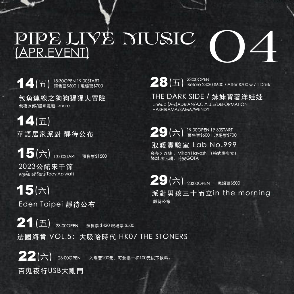 ♪樂團演出、DJ電子音樂派對、嘻哈派對活動 塞爆整個四月♪