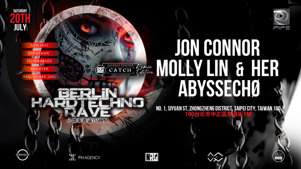 在展示會上為 Jon 助陣的將是台北當地超級巨星 Molly Lin & Her,以及台北硬核 Techno 二人組 Abyssechø